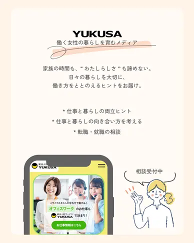YUKUSAでは、保育・介護の現場で学びを活かせる職場のご紹介はもちろん、